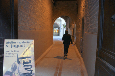 Véronique JOGUET Peintures Visite de la Galerie ATELIER GALERIEInstallé dans un patio du Vieux Perpignan 18 rue de l'Ange, un endroit pitoresque pour le travail et l'exposition permanente de ses oeuvres. Il ne s'agit pas de peindre la vie, mais de rendre vivante la peinture