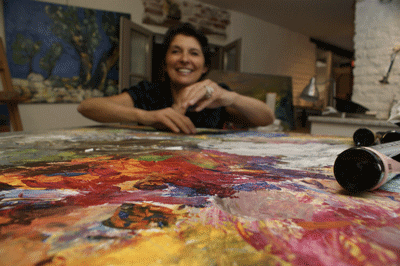 Véronique JOGUET va en avant d’elle même, puisant son inspiration partout et toujours, s’imprégnant au fil de ses voyages d’émotions, d’impressions, de couleurs et de lumières, livrées sur la toile à son retour. Ses souvenirs prennent corps dans des séries de toiles qui déclinent le thème aimé en diverses variantes : douceur de tons pour ces paisibles vallons et collines d’Andalousie , rigueur du trait et couleurs percutantes pour la modernité des hauts immeubles de Manhattan, jeux de lumières pour la savane africaine…
